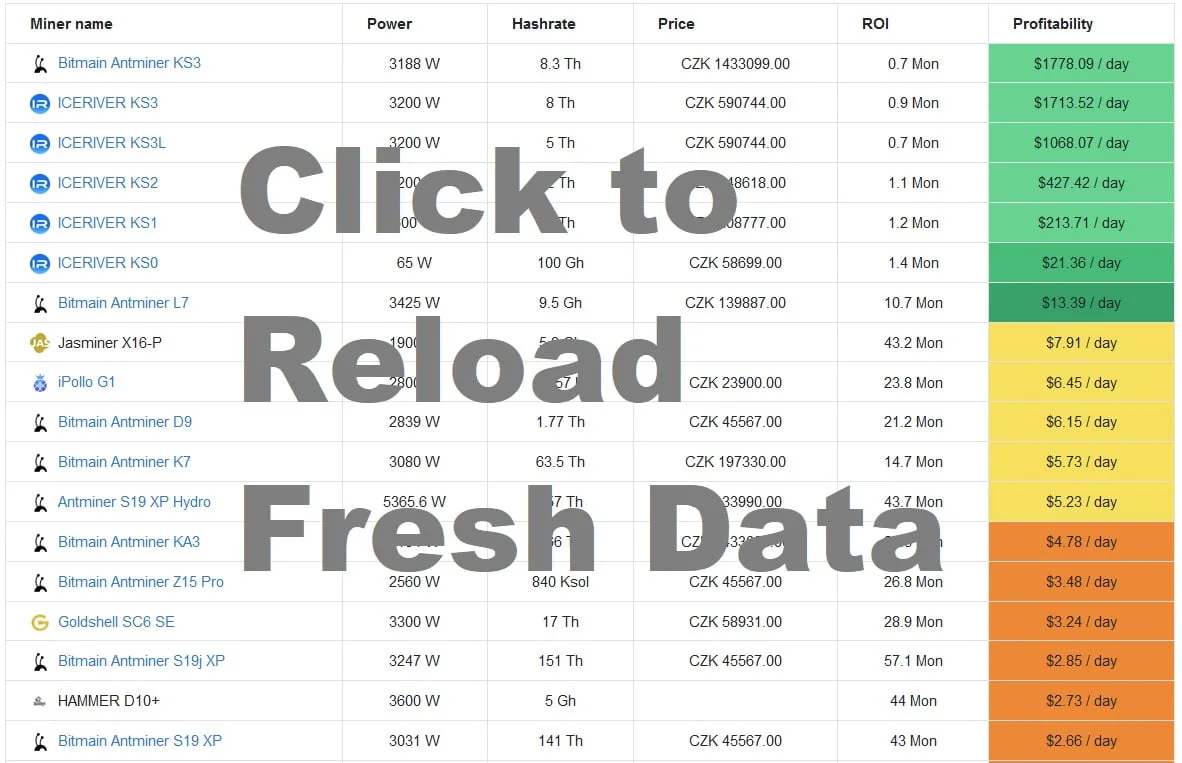 الربحية ASIC يُحسب الربح من خلال خصم تكلفة الكهرباء المستهلكة من المقابس. ولحساب الربح، يُستخدم عادةً سعر 1 كيلوواط/ساعة من الكهرباء، وهو 0,1 دولار أمريكي، أي ما يعادل 2,2 كرونة تشيكية (باستثناء ضريبة القيمة المضافة). يمكنك الاطلاع هنا على مخطط الربحية عمال المناجم اعتبارًا من اليوم: