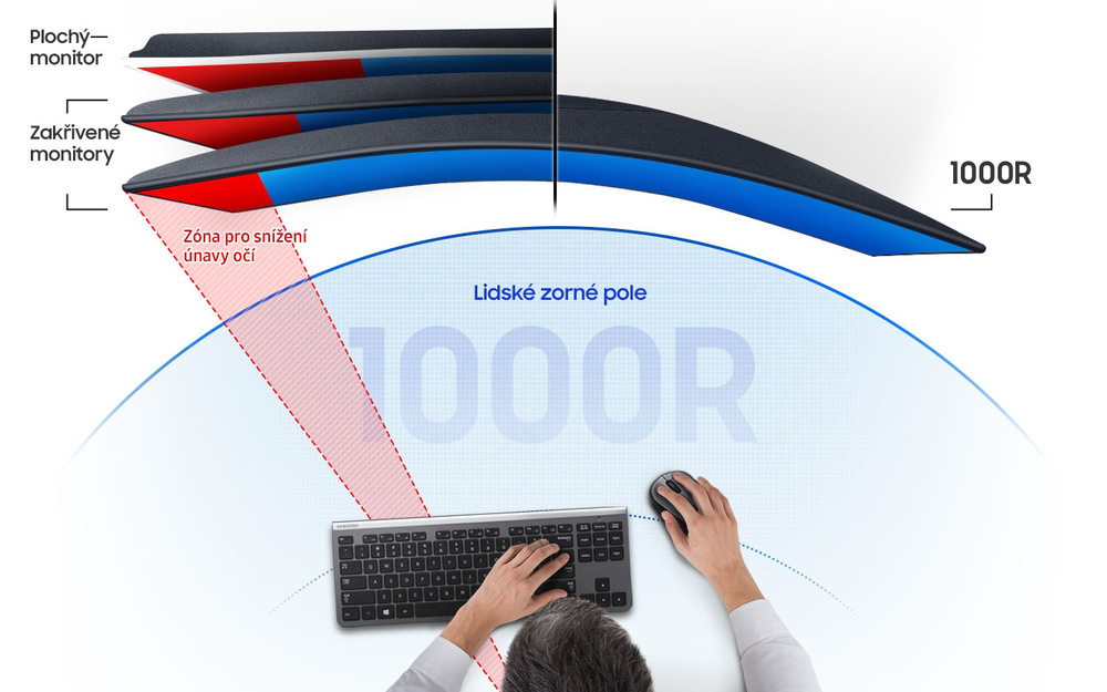 Samsung je expertem na prohnuté monitory. Tento model vyniká ideálním zakřivením, aby z něj uživatelé získali maximum. Zakřivení perfektně sedí k úhlu očí a zraku, takže vidíte obraz kompletní z jedné strany ke druhé.