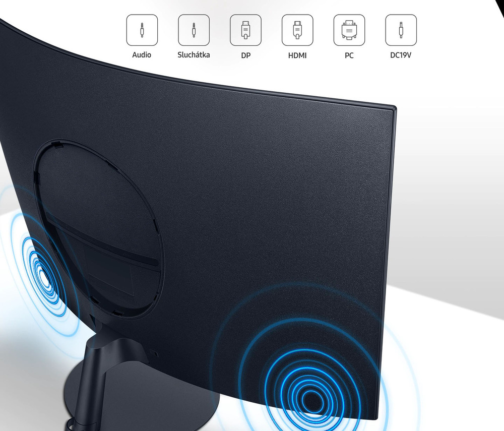 Na zadní straně monitoru najdete konektory, pomocí kterých ho připojíte k počítači nebo k němu samotnému přes kabel zapojíte externí zařízení. Nechybí zde HDMI, DisplayPort, ale ani zvukový konektor nebo port sluchátek.